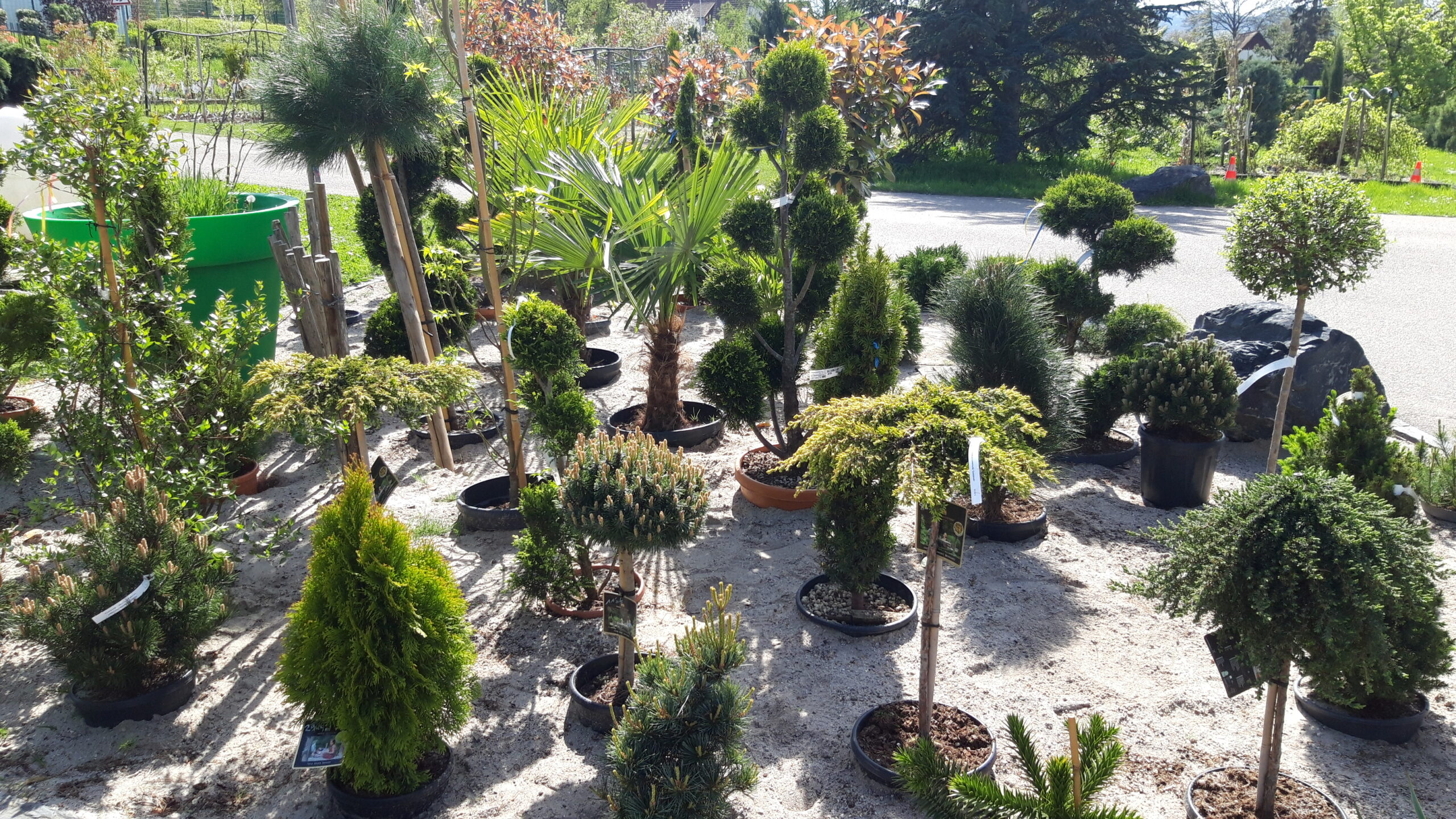 Nous avons un magasin et des plantes en stock à l’extérieur, mais aussi un grand show-room de matériaux pour notre partie Aménagement Paysager.